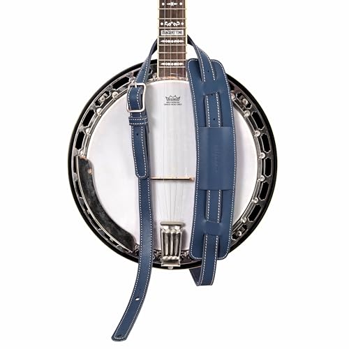 Nefelibata Banjo Strap, 2.6" Wide Double Layer Full Grain Cowhide Leather Guitar Strap Adjustable Replacement With Headstock Rope(Deep Sea Blue)