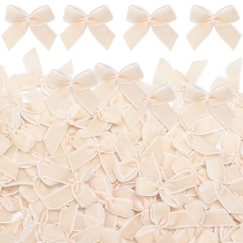 Waydress 120 Pcs Tiny Mini Christmas Velvet Bows for Crafts Xmas Twist Tie Bows Ribbon Bowknot Christmas DIY Craft Sewing Scrapbooking Gift Wrapping(Beige, 1 Inch)