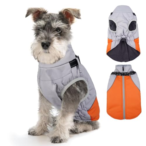 AuraPaw Dog Coat with Harness Built in,Water-Repellent Dog Jacket Christmas Puppy Winter Coat with Reflective,XS Doggy Winter Jacket with Zipper,Soft Pet Fleece Snow Jacket for Small Dogs,Orange,XS