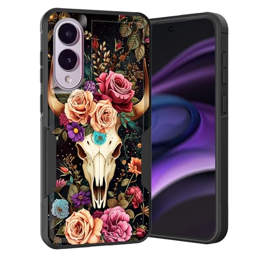 KJFHDJFDH for Galaxy S25 Edge Case,Dual Layer Hybrid Heavy Duty Rugged Shockproof Hard PC +Soft Silicone Protective Case for Samsung Galaxy S25 Edge 2025,Deer Skull Flower