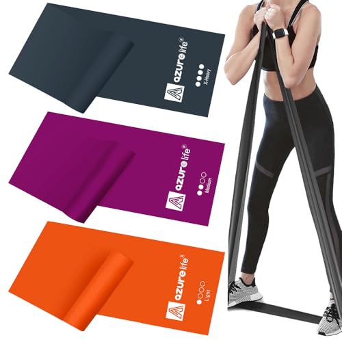 A AZURELIFE Resistance Bands,Professional Long Non-Latex Elastic Stretch Bands,Exercise Bands for Physical Therapy, Yoga, Pilates, Rehab, at-Home or The Gym Workouts, Strength Training