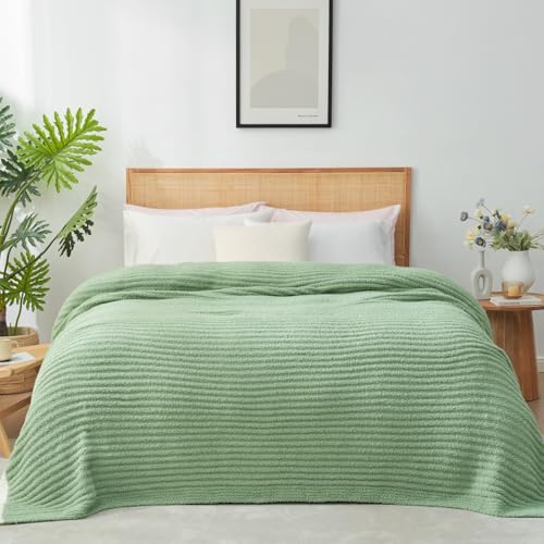 Snuggle Sac Queen Size Blanket for Bed, Soft Luxurious Bedding Blankets, Large Fuzzy Plush Microfiber Blankets, Sage Green, 90x90 inches