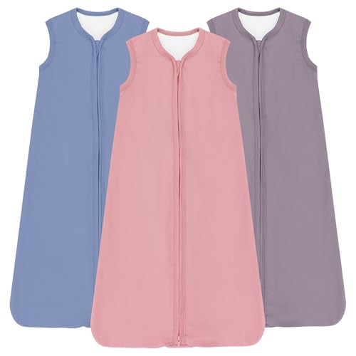 TOTCHILL Sleep Sack 3-6 Mouths, Skin-Friendly Wearable Blankets, 0.5 TOG Lightweight Sleeping Bags with Special 1-way Zipper, 3-Pack