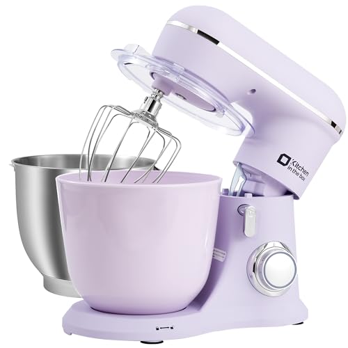 Kitchen in the box Stand Mixer, 4.5QT+5QT Two bowls Electric Food Mixer, 10 Speeds 3-IN-1 Kitchen Mixer for Daily Use with Egg Whisk,Dough Hook,Flat Beater (Lilac, 5QT)