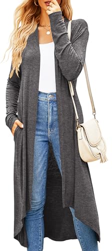 Newchoice Womens Long Sleeve Cardigans Cardigan Duster Kimonos Boho Solid Color High Low Hem Duster Cardigan Sweater Outfit(Dark Grey,M)