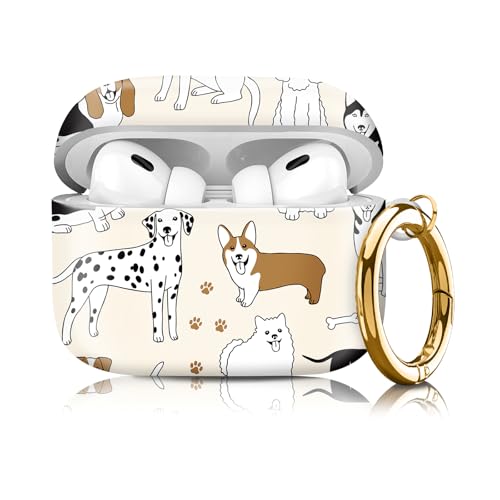 Compatible with Airpod pro 2nd/1st Generation Case Cover with Gold Round Keychain Cute Pattern Hard & Anti Slip Cover for Men Women & Girls(Various Dogs)