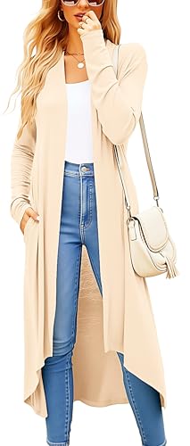 Newchoice Long Cardigan For Women Fall Casual Open Front Work Office Outfit Long Sleeve Cardigan With Pockets(Beige,L)