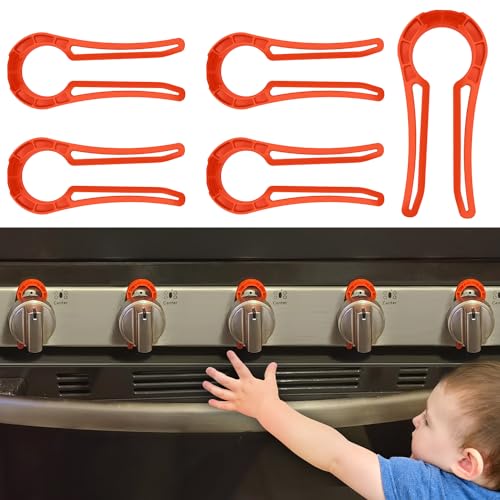 Stove Knob Lock for Child Safety and Proofing (5 Pack), Oven Knob Safety Covers for Kids and Pets(RED)