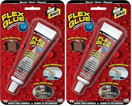 Flex Glue, Mini, White, Super Strong, Rubberized Waterproof Adhesive, Works Underwater, Use On Pools, Showers, Outdoors, Concrete, Brick, Pavers, Masonry, and UV Resistant, 0.75 fl oz (Pack of 2)
