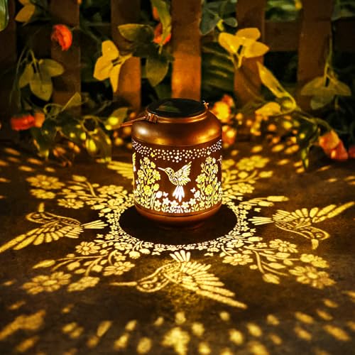 Hummingbird Solar Lanterns Outdoor Waterproof,Birthday Gifts for Women Mom Grandma Hanging Lantern Yard Art Decorative Hummingbird Solar Lights for Decor Garden, Patio, Porch, Backyard, Pathway, Lawn