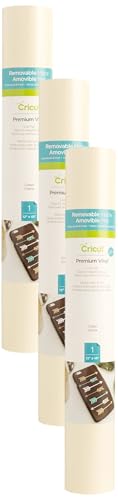 Cricut Removable Vinyl, Cream - 3-Pack of 4ft Rolls (12"x48") Premium No-Residue Vinyl for DIY Crafts, Wall Decals, Stickers, in-House Décor - Compatible with Cricut Maker + Explore Machines