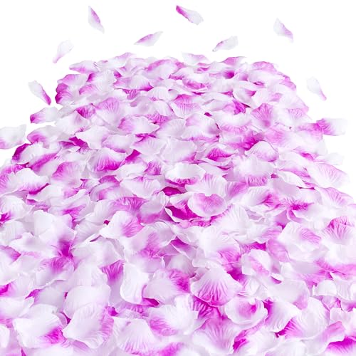 SITUMEIZI 1500PCS Purple Rose Petals Silk Rose Petals for Romantic Night for Her Set Valentine,Wedding,Party,Proposal Anniversary Decorations(Purple&White)