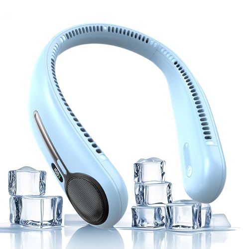 Kinhowly Portable Neck Fan,Hands Free Personal Wearable Bladeless Fan,6000mAh USB Rechargeable,360° Cooling,LED Display,4-Speeds,Birthday Gifts for Men Women Dad Mom,Christmas Gifts (Light blue)