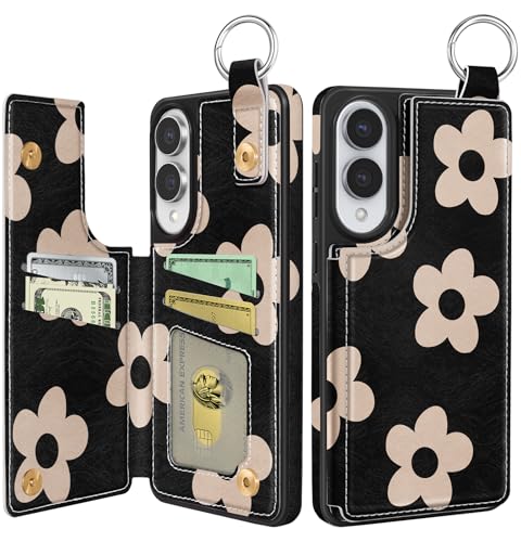 Shorogyt for Samsung Galaxy S25 Edge Wallet Case with Card Holder - Designer Black Flower Kickstand Magnetic Clasp Back Flip Folio Leather Phone Cases for Galaxy S25 Edge for Women Men Girls