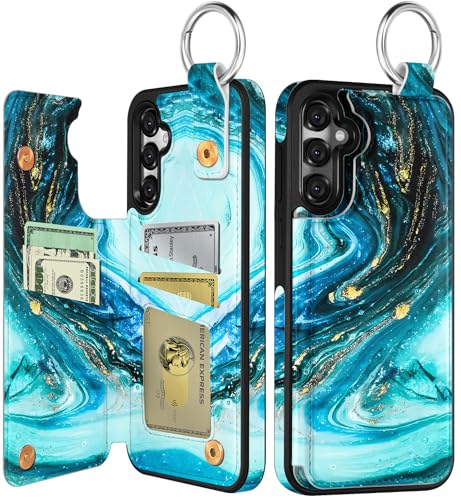 Shorogyt for Samsung Galaxy S25 Plus Wallet Case - Cute Fashion Cyan Design with Card Holder Kickstand for Magnetic Clasp Back Flip Folio Leather Phone Cases for Wome Girls Men