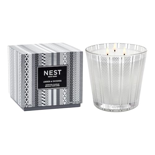 NEST New York Scented 3-Wick Candle, Amber & Incense - 21.2 oz - Up to 100-Hour Burn Time - Reusable Glass Vessel