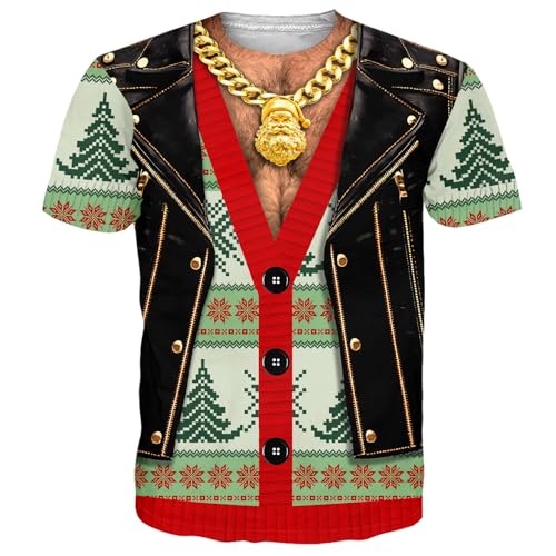 Goodstoworld Christmas Muscle T Shirts Costume Men Young 3D Rave 6 Pack Abs Graphic Tshirts for Men Cool Colorful Costume Chest Tan Shirt Women Xmas Party Gift Tees Large