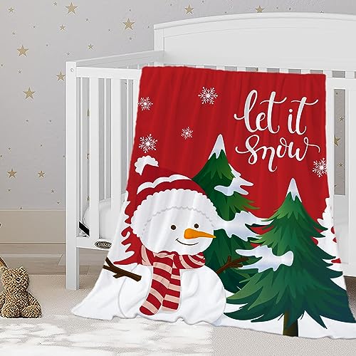 YeeJu Christmas Throw Blanket Kids Small Red Christmas Snowman Blanket for Girls Boys Child Baby Bed SoftLet It Snow Fuzzy Plush Fleece Blankets and Throws Xmas Winter Holiday Blanket 40x50