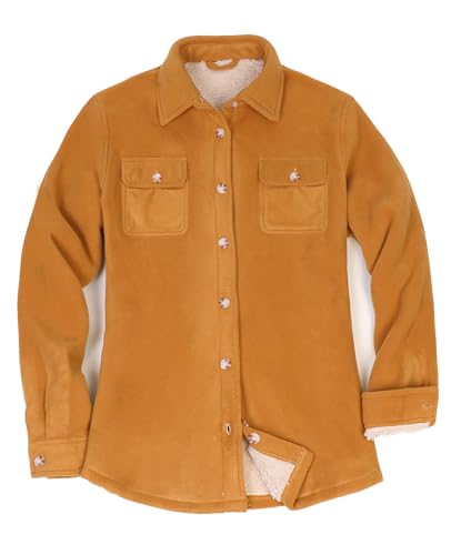ThCreasa Solid Shirt Jackets for Women Button Down Long Sleeve Sherpa Lined Warm Comfy Flannel Shacket Western Jacket Light Brown L
