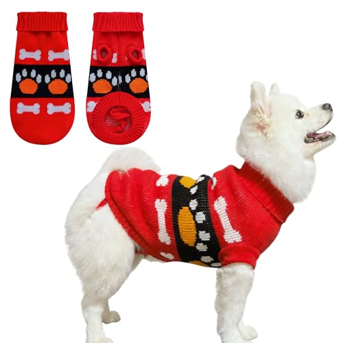 COJBPET Knitted Dog Sweater for Small Dogs, Pullover Turtleneck Pet Sweaters, Warm Soft Winter Holiday Cat Sweater, Winter Dog Clothes, Bone Pattern, XS