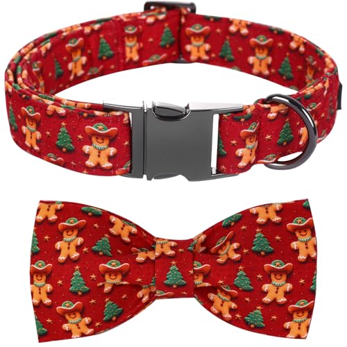 Bobo Rainbow Christmas Dog Collar, Soft Pet Collar Gingerbread Man Cute Dog Collar with Bow Red Christmas Tree Adjustable Sturdy Collars Winter Holiday Collars for X-Large Girl Boy Dogs
