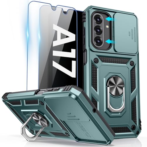 Goton Compatible with Samsung Galaxy A17 5G Phone Case with Privacy + HD Tempered Glass Screen Protector & Camera Cover & Kickstand Ring, Military Grade Shockproof Bumper Case for A17 4G 5G/A26 Green