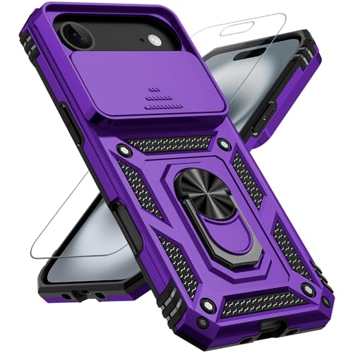 for iPhone Air Case, with Slide Camera Cover HD Screen Protector [Military Grade 16ft. Drop Tested] Ring Holder Kickstand Protective Phone Case for Apple iPhone Air 2025, Purple