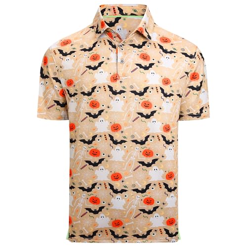 Esabel.C Golf Shirts for Men Dry Fit Performance Short Sleeve Print Moisture Wicking Collared Shirt,Khaki bat,XL