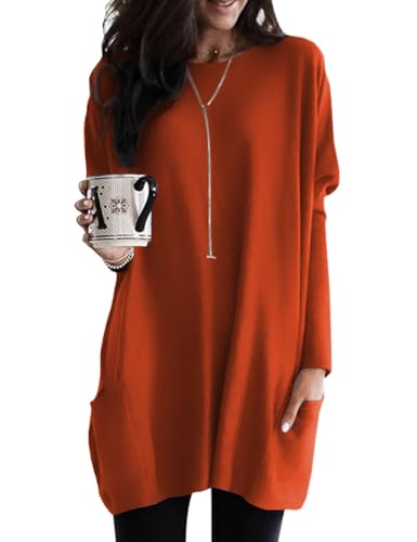 Poetsky Womens Holiday Shirts Dressy Casual Tunic Tops Trendy Long Sleeve Blouses with Pockets Oversized Work Clothes Business to Wear with Leggings Orange L