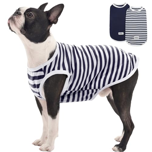 FUAMEY 2 Pack Dog T-Shirts for Large Dogs,Puppy Lightweight & Breathable Sleeveless Shirts Soft Dog Tee Pet Vest T Outfit Dogs Striped Tank Tops Blue XL