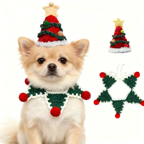 MITOCAPY Christmas Dog Costume,Handmade Christmas Tree Dog Hat,Rabbit Outfit,Cat Costume,Adjustable Fit Five-Pointed Star Kitten Clothes,Pet Accessories for Party,Outgoing