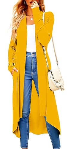 Newchoice Light Weight Cardigan Women Summer Draped Open Front Long Sleeve Cardigan with Pockets(Yellow,L)