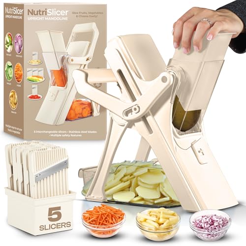 EMSON Safe Mandoline Slicer for Kitchen, All in 1 Mandoline Slicer for Food Works as Potato Slicer, Vegetable Slicer, Food Slicer, French Fry Cutter and More with 5 Blades and Storage Container