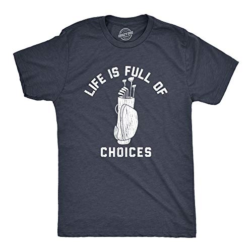 Crazy Dog Mens T Shirt Life is Full of Choices Funny Golf Tee Pun Shirt with Dad Joke Hilarious Golfing Fathers Day Tee Heather Navy 3XL