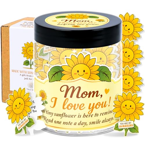 Mom Sunflower Gifts – I Love You Mom Gifts - 60 Positive Sunflower Daily Affirmation Cards Jar – Mothers Day, Christmas, Birthday Gift for Moms - Moms Gift from Daughter, Son, Kid
