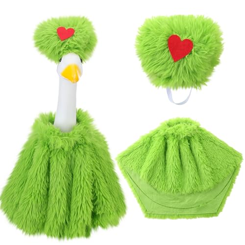 Aliceset Christmas Red and Green Goose Outfit Porch Goose Clothes Christmas Cape with Red and Green Fur Headgear Costume for 23" Statue Patio Lawn Garden Xmas Decoration