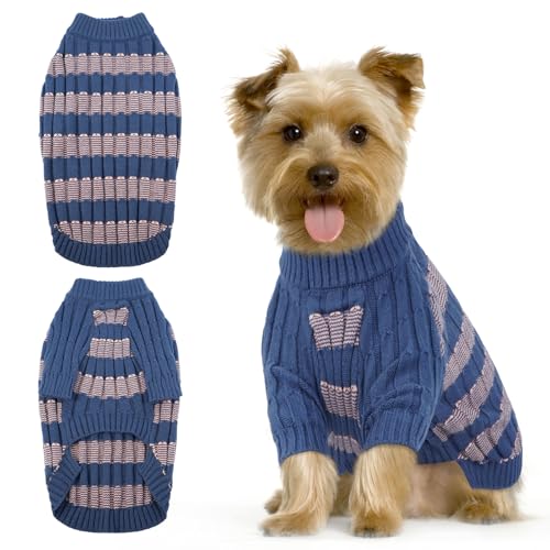Cute Dog Sweater - Warm Knit Dog Sweater with Harness Hole, Stretchy Clothes with Long Sleeve, Soft Winter Pullover for Small Dogs Girl Boy, Pomeranian Mini Dachshund Toy Poodle, Blue S