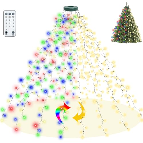 Kifiray Multicolor/Warm White Christmas Tree Lights with Ring, 400 LEDs 7.5ft x 16 Lines Xmas Strings Light with Remote Control for 5-7.5ft Christmas Tree Decorations