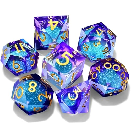 Liquid Core Quicksand Resin DND Dice, Sharp Edge Dungeons and Dragons Polyhedron Game Dice Set for Role Playing Games RPG Explorer Magic, Holiday Birthday Gifts Party Favors