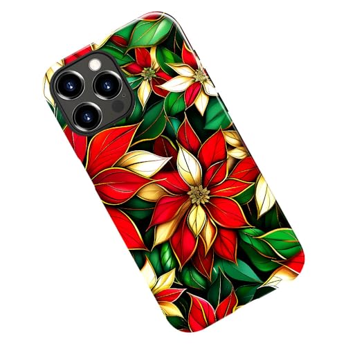 Case for iPhone 14 Pro Max,Christmas Poinsettia Flowers Vibrant Phone Case Military-Grade Drop Protection Cover for Women Girl - Glossy