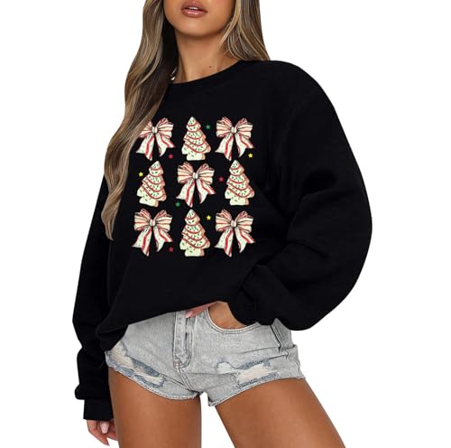 MYHALF Christmas Sweatshirts for Women Crewneck Christmas Bow Pullover Shirt Oversized Holiday Ugly Sweater