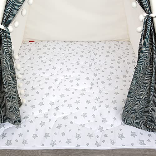 Moonsea Mat of Teepee Tent for Kids, Anti Slip Bottom Square Padded Rug 43''x 43'' Kids Teepee Pad for Boys and Girls, Toddler Quilted Mat, White Star