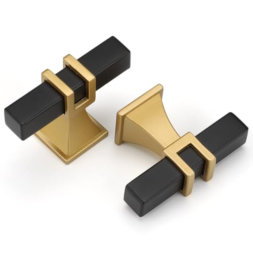LONTAN 12 Pack Kitchen Cabinet Knobs Black and Gold Cabinet Knobs Dresser Drawer Hardware for Kitchen Bathroom Modern Black Hardware