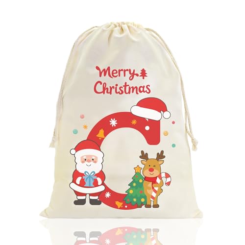 Fohufo 2025 Large Christmas Gift Bags - Xmas Decorations Indoor Gift Bags, 19.6 x 25.5 Inch Reusable Christmas Gifts Bag, Initial Santa Sacks Xmas Bag Party Supplies, Large C