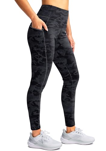 SANTINY Women's Fleece Lined Winter Leggings Water Resistant High Waisted Thermal Hiking Running Warm Pants Women Pockets(Grey Camo_L)