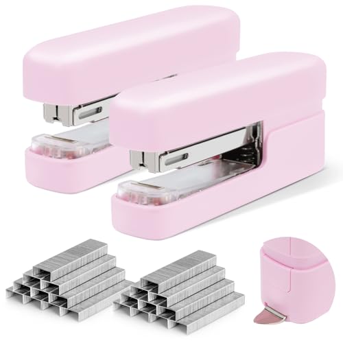 deli Stapler, Desktop Staplers with Integrated Staple Remover, 45 Sheet Capacity Office Stapler, 2 Pack, Pink