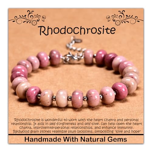 CHCCOYE 5x8mm Natural Healing Gemstone Bracelet – Handmade Yoga Beaded Bracelet, Stress-Relief Crystal Jewelry for Men & Women (Rhodochrosite)