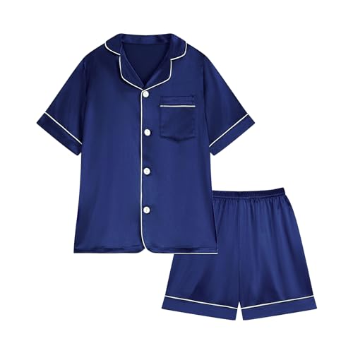 Weixinbuy Pajamas Set for Girls Boys Button-up Satin Silk Pajamas Sleepwear Nightwear Loungewear Gifts Pjs Set for Kids Baby