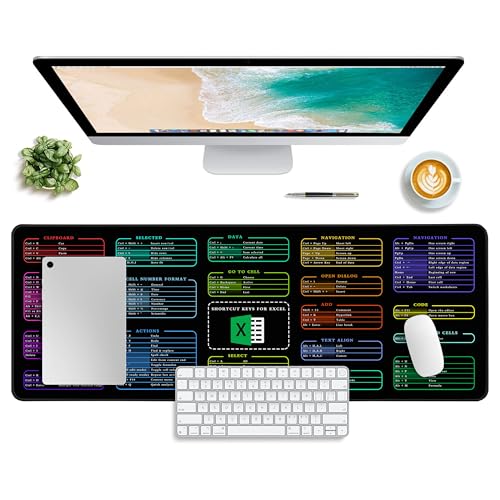 Excel Shortcut Keys Mouse Pad,Desk Mat,Common Software Shortcut Keys Gaming Mouse Pad,Keyboard Mat Office Desk Decor Accessories