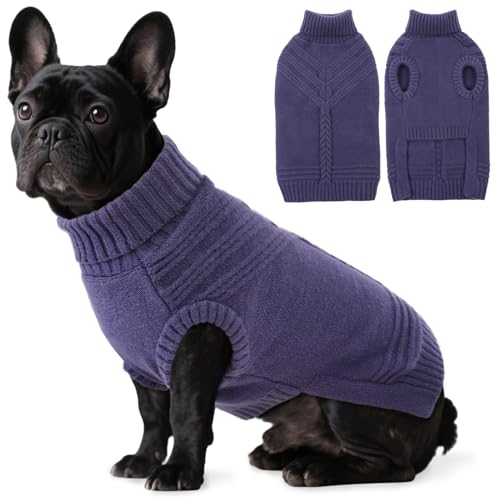 Dog Sweaters for Small Dogs Male Female Pet Knitwear Classic Puppy Warm Pullover Turtleneck Cold Weather Clothes for Yorkie(GrayishBlue, S)
